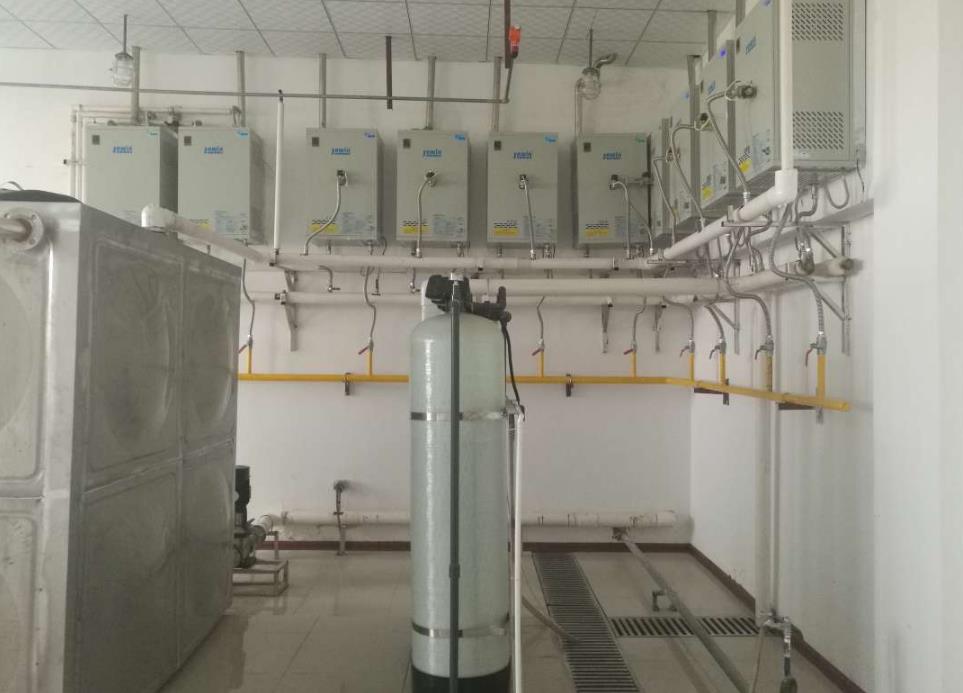 我校原來配備的燃?xì)忮仩t規(guī)格較大(現(xiàn)在的開水使用量較早期設(shè)計(jì)時(shí)的用量有大幅度的下降),傳統(tǒng)的大型鍋爐存在熱效率低等問題,替換成模塊化的燃?xì)忾_水機(jī)組,熱效率高達(dá)90%以上,效率的提高代表著能源的高效利用,新的方案采用10臺(tái)模塊燃?xì)忾_水機(jī)組來提供開水系統(tǒng)使用。