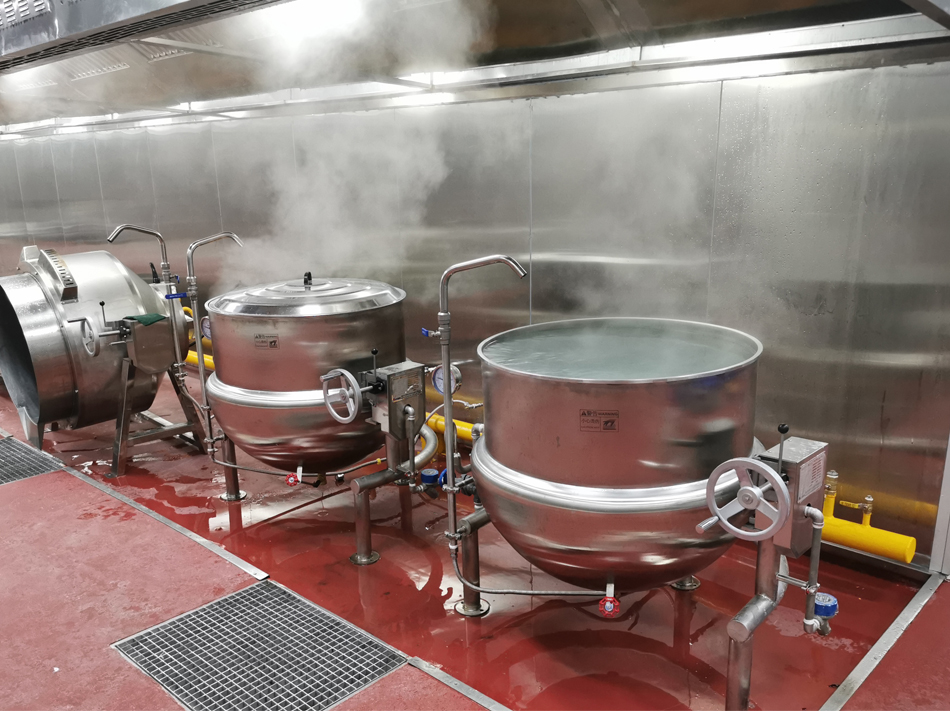 廣州南沙區某智能中央廚房項目,面積1萬多平米,總投資5000萬元左右,預計年產值3億元,日生產約4萬份熱鏈健康便當、1萬份冷鏈便當、50噸健康食材供應,該央廚將成為南沙區健康膳食、健康食材配送的民生服務重要保障基地。廣州南沙區某智能中央廚房蒸汽系統由我司設計、供貨、施工,采用我司0.5噸免檢蒸汽發生器,分別為長龍式洗碗機、洗框機、夾層鍋、溫水煮槽、速冷機等提供高溫蒸汽。中央廚房熱水系統由我司設計、供貨、施工,采用我司燃氣雙膽熱水機,將80℃熱水輸送至熱水用水點。
