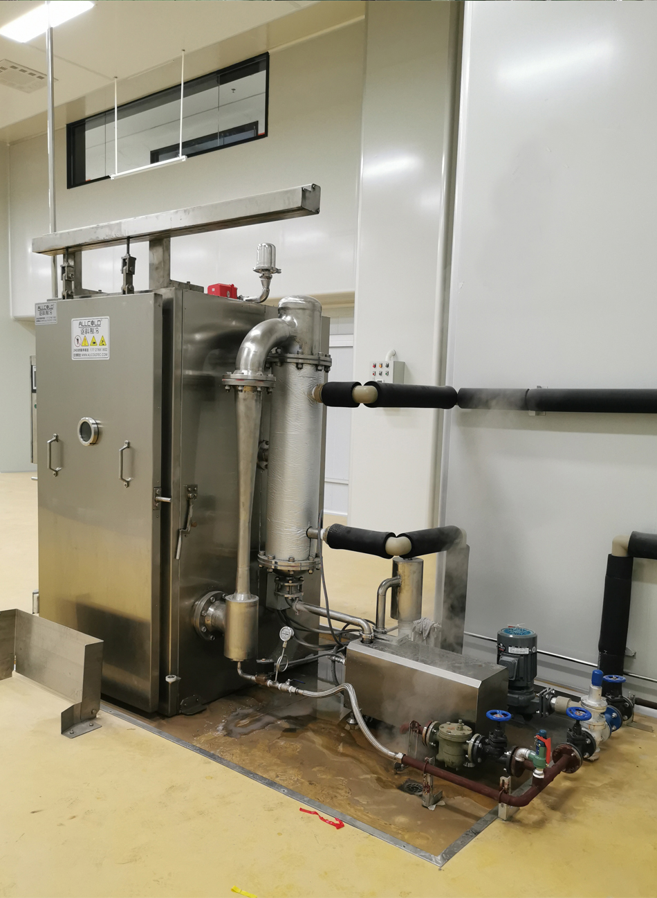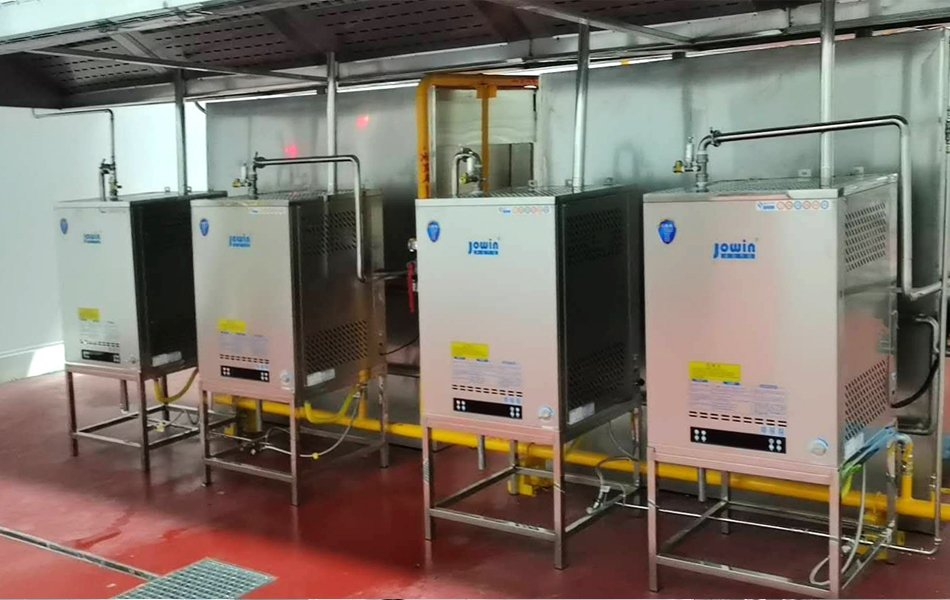 夾層鍋采用中央蒸汽供熱熱水槽真空速冷機采用中央蒸汽供熱選用10余套我司智能蒸箱+蒸汽機組合中央廚房選用我司高溫節能蒸汽機為雙車蒸柜配置蒸汽。凍庫采用我司商用電熱立式蒸汽發生器提供蒸汽,其蒸發量最大可達200kg/h。