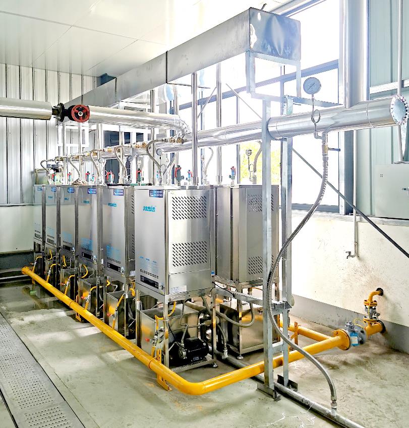 卓益商用模塊式蒸汽發(fā)生器,主要用于傳統(tǒng)蒸柜的節(jié)能改造,產(chǎn)品采用模塊化結(jié)構(gòu),大大提高了設(shè)備的可靠性。整機(jī)由燃?xì)怆姶砰y(可人工調(diào)節(jié)控制火力大小)、燃燒器、電子點火器、水泵、316不銹鋼管換熱器、水位控制箱、強(qiáng)排抽風(fēng)機(jī)、智能控制總成等要件構(gòu)成。運用最新燃燒換熱技術(shù)設(shè)計制造,一鍵操作,智能控制,可使用液化石油氣、天然氣、人工煤氣等氣體燃料,快速地的產(chǎn)生大量連續(xù)蒸汽。設(shè)備自動運行,可單機(jī)或多機(jī)組合使用,是替代傳統(tǒng)鍋爐和傳統(tǒng)加熱設(shè)備或節(jié)能改造的最佳產(chǎn)品。