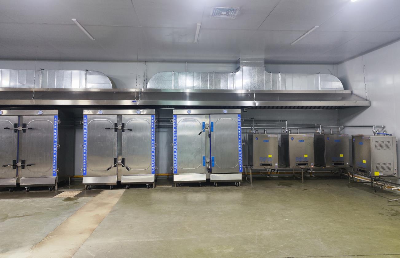 采用卓益蒸汽發生器為夾層鍋與蒸箱提供潔凈蒸汽,中央廚房項目投產,單日產能3萬余份餐食。