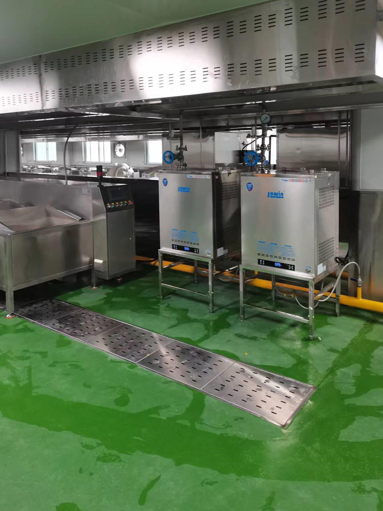 漢中中央廚房項目,卓益蒸汽發生器配的洗筐機,蒸箱和瓢湯線