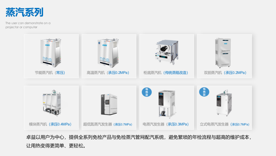 卓益對蒸汽產(chǎn)品進(jìn)行了重新定義,可為用戶提供不同壓力、不同蒸發(fā)量的產(chǎn)品矩陣,能更好地滿足用戶的用熱需求。卓益通過模塊化、智能化的設(shè)計(jì)理念,并結(jié)合先進(jìn)的智能群控算法,讓設(shè)備既可單機(jī)變頻工作,又可多機(jī)協(xié)同運(yùn)行,讓設(shè)備一直保持在最佳工作狀態(tài),使供熱系統(tǒng)變得更安全、更智能、更環(huán)保、更節(jié)能。