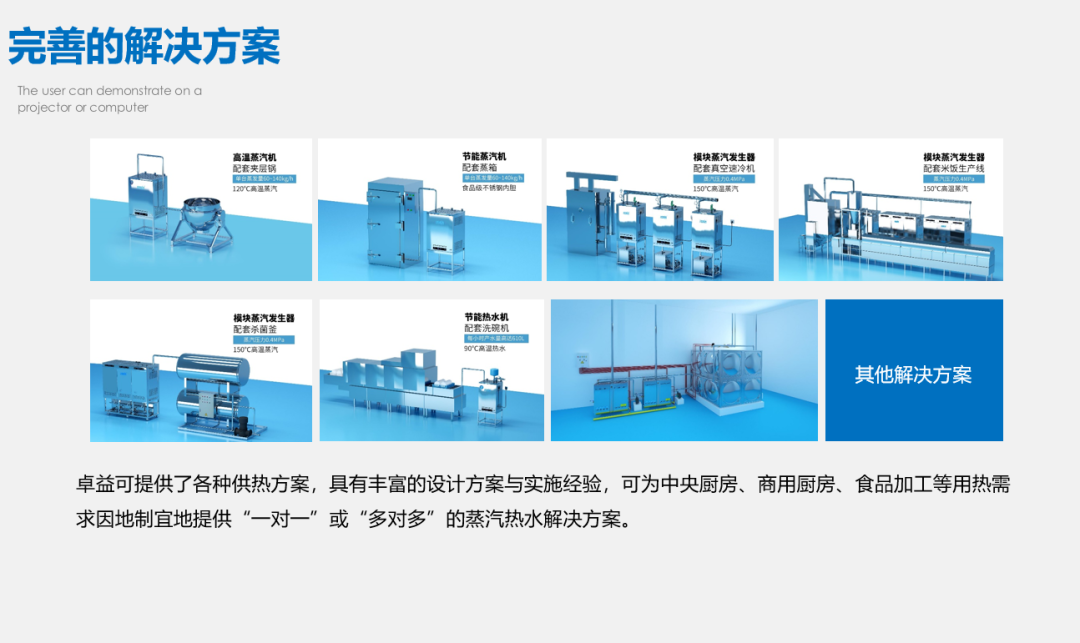 【中央廚房蒸汽、熱水解決方案】【供暖解決方案】【直供熱水解決方案】【中央熱水節(jié)能解決方案】【中央開水節(jié)能解決方案】【工業(yè)蒸汽節(jié)能解決方案】可根據(jù)行業(yè)類型、規(guī)模大小及地域區(qū)別,有針對性地設(shè)計(jì)最符合用戶需求的供熱解決方案并配置最合適的節(jié)能產(chǎn)品。