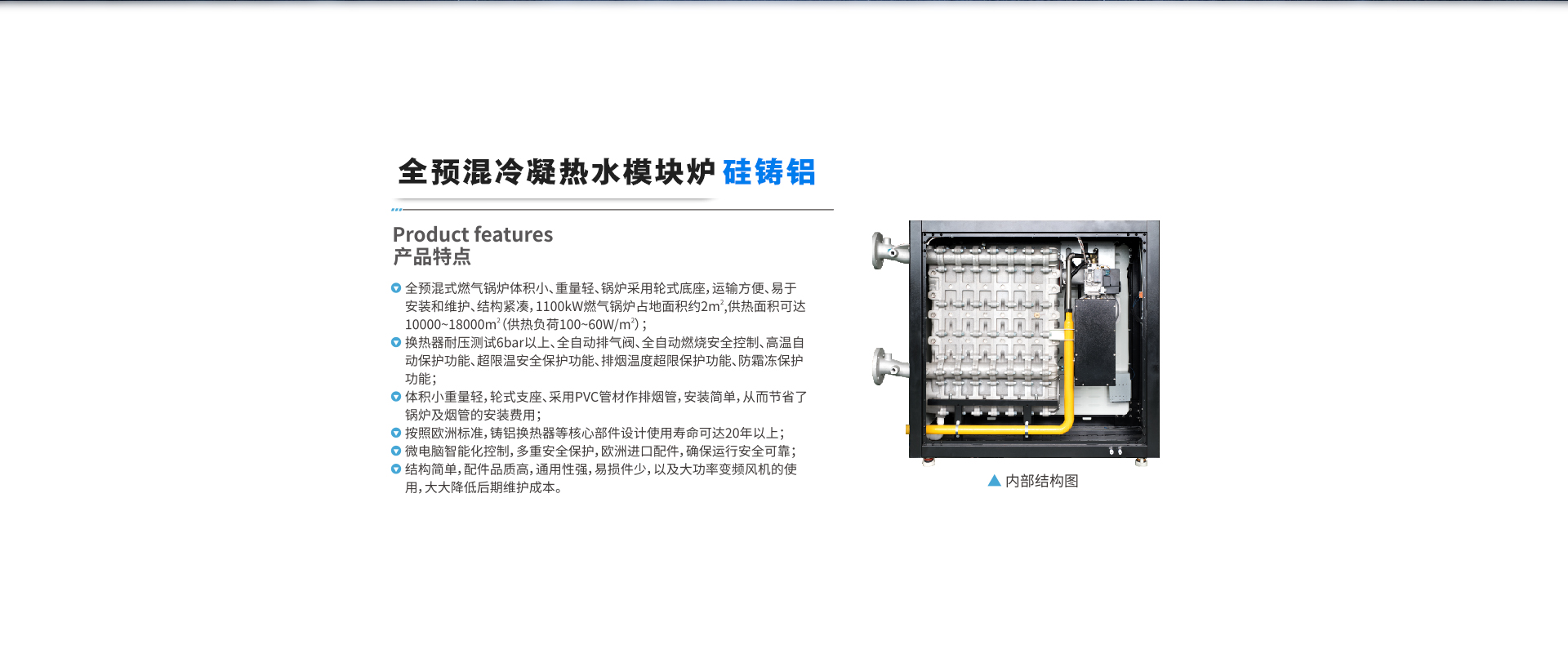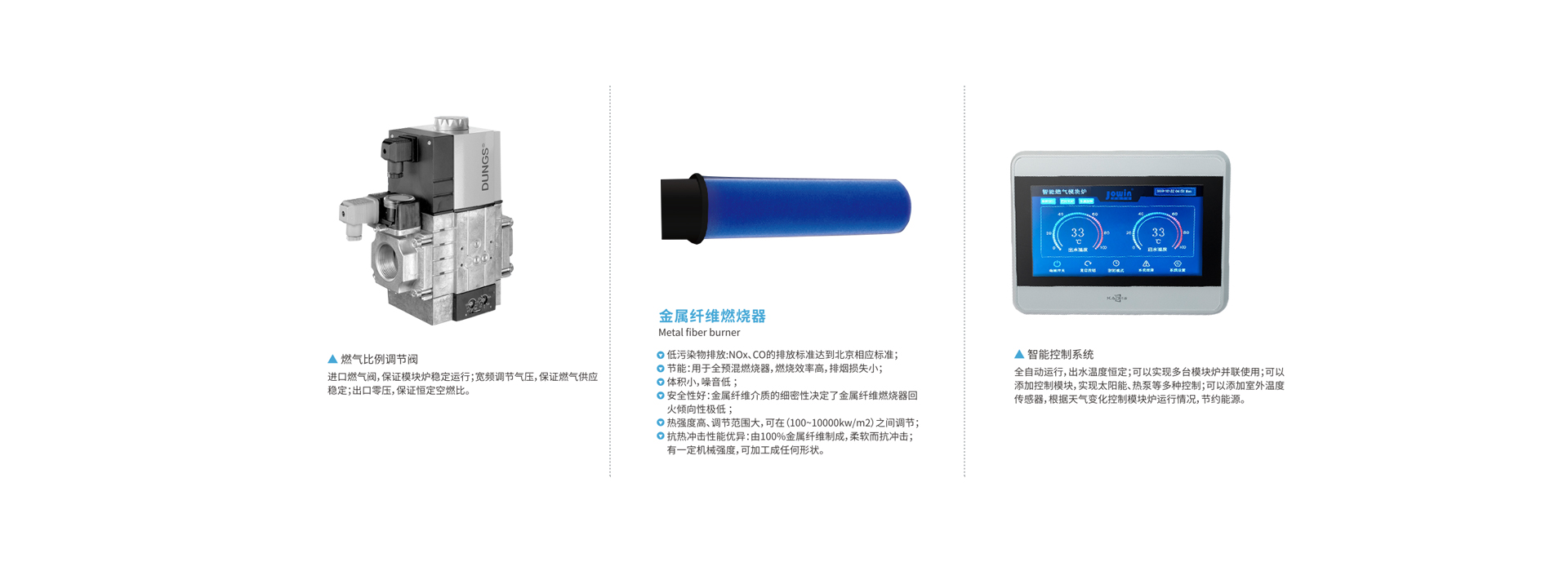 全預(yù)混式模塊爐體積小,重量輕產(chǎn)品采用輪式底座,運(yùn)輸方便,易于安裝,1100kw模塊爐占地面積約2m2,供熱面積可達(dá)1000~18000m2